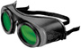 OCCHIALI DI PROTEZIONE; MONTATURA IN PLASTICA LEGGERA E INDEFORMABILE; LENTI VERDI DIN 5 IN VETRO
